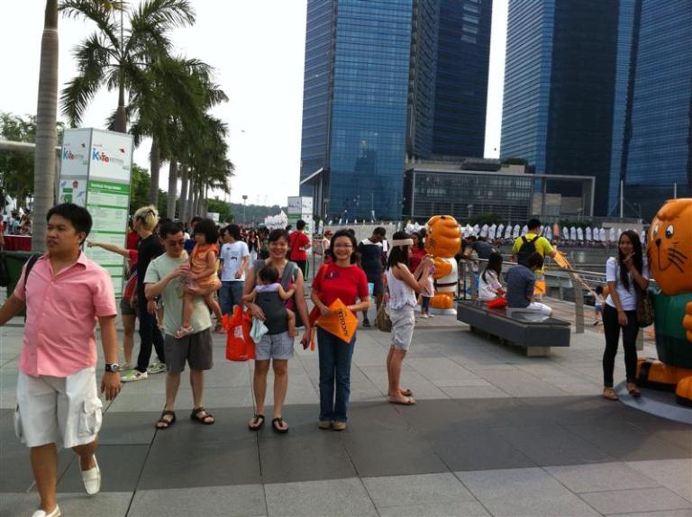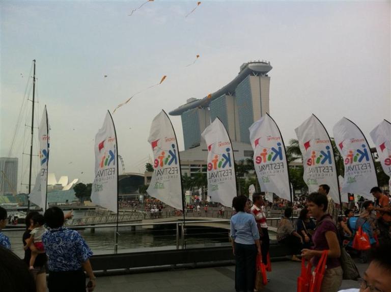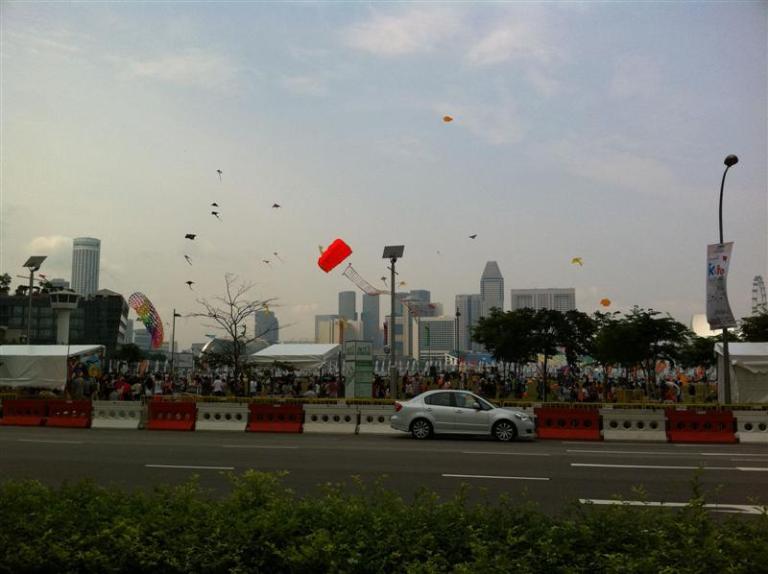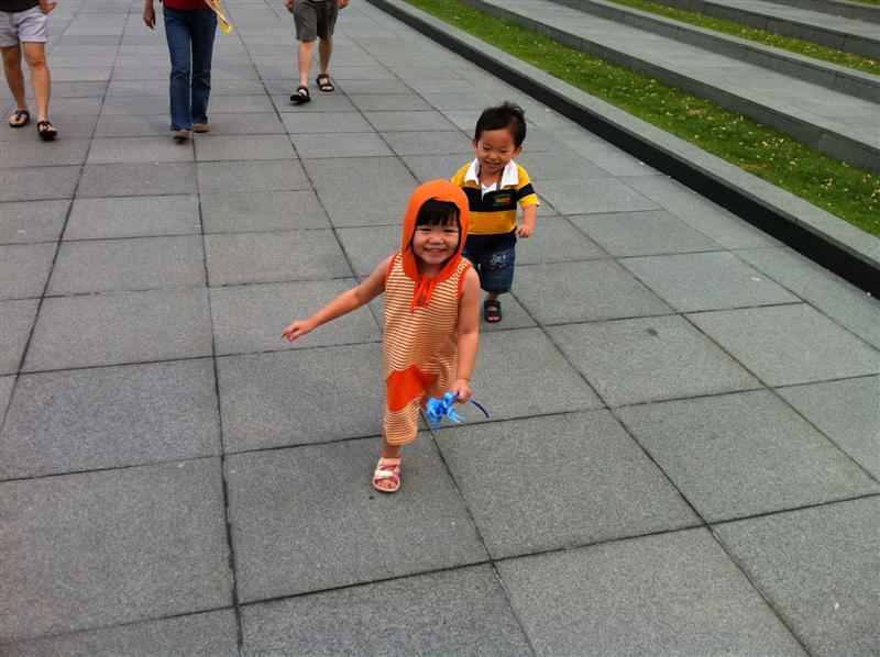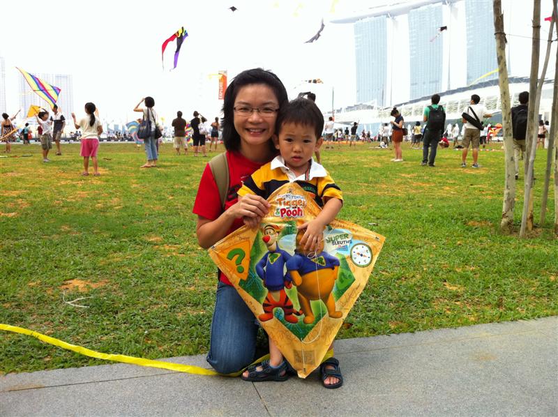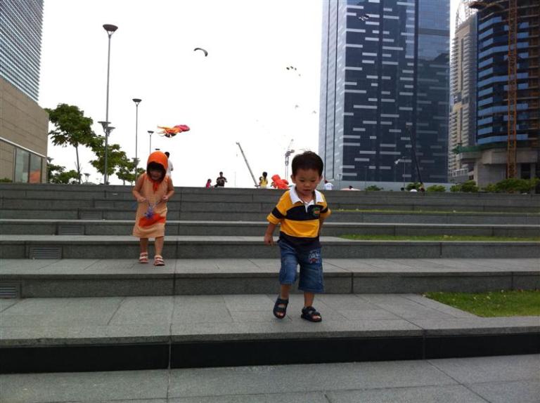 Melvin & Jolene together with their kids came over to our place for swim in the morning. After lunch the kids were having a good time playing. They played until 3.30pm, while the parents are enjoying sometime leaving the kids to enjoy by themselves. Seeing that Jaydon had miss his nap time, I suggested of going to Kite Festival which was organised by Act3 in Marina Promenade… and so we drive down to town.