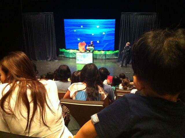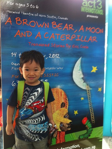 This year, knowing that the team that brought in the Hungry Caterpillar in 2011 is coming back this year, we decide to bring the kids back for the performance. This time, beside the Hungry Caterpillar, they included 2 other story – A brown bear and A moon. Venue is the same as last year – Fusionpolis.