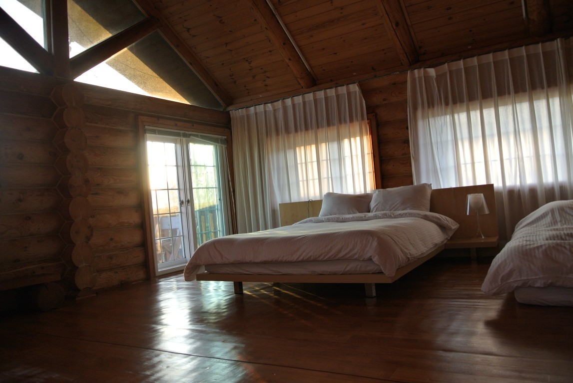 Property was nice, and it had a spacious garden where the kids were enjoying running around. Our accommodation were 2 story log house. Interior was clean and we had 2 spacious queen size bed in the second story of the lodge. With the full day of traveling, we decided to relax and enjoy the tranquility of the surrounding. Our bedrooms face the sea and from the distance, we could see the small town which we had our lunch.