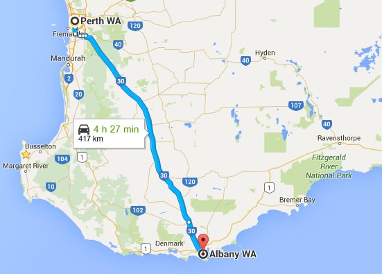 5 hours drive from Perth to Albany