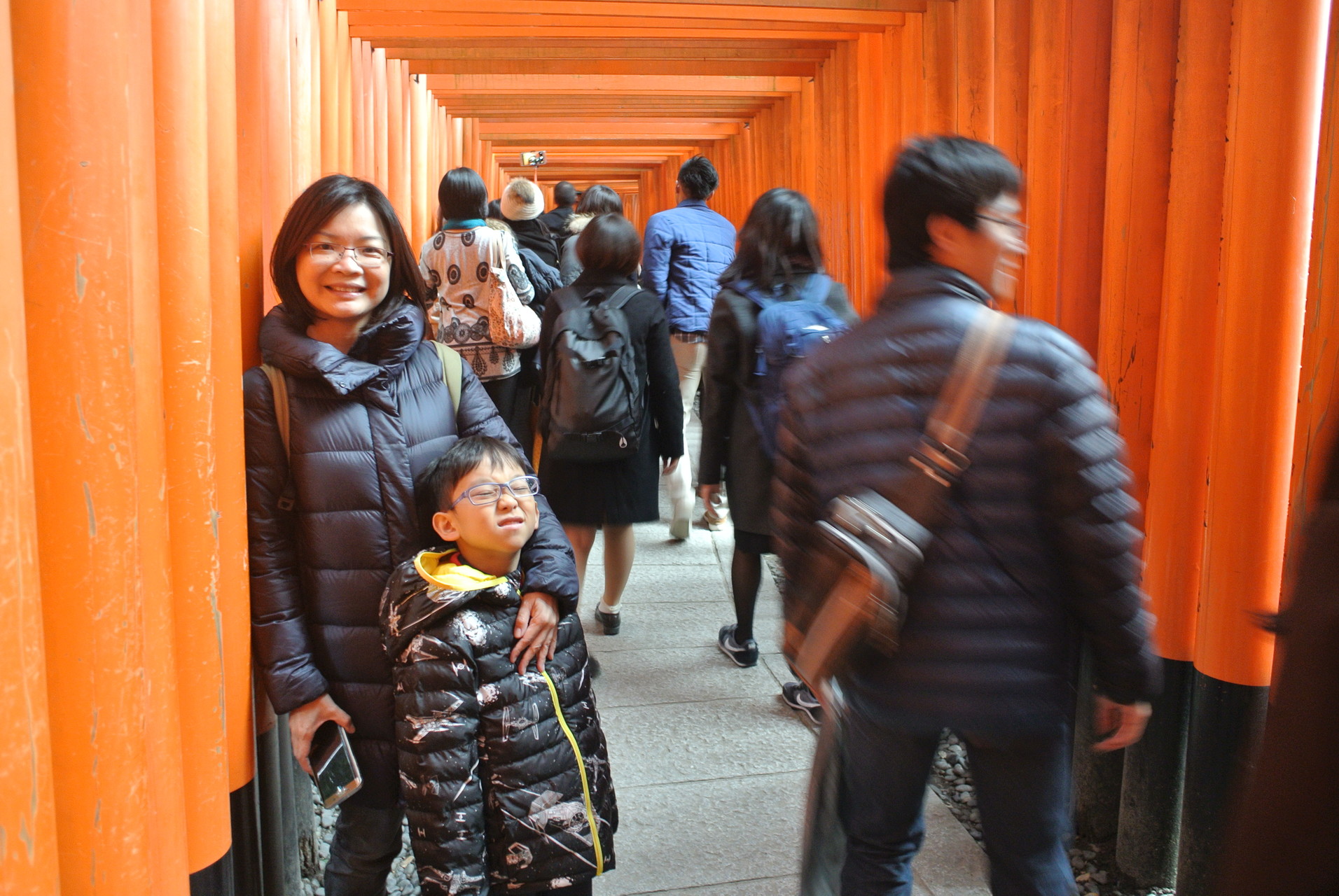 The area is huge. The Torii gates straddle a network of trails behind its main buildings. We need to walk past the main building & various auxiliary buildings & Shrines. One of the auxiliary building is a shrine where people to pray for kids exam (FYI only :)). Jaydon was getting a bit bored and was whining. Unfortunately, we need to move on.. because it is once in a lifetime to see the Torii Gates. Whoahahaa.