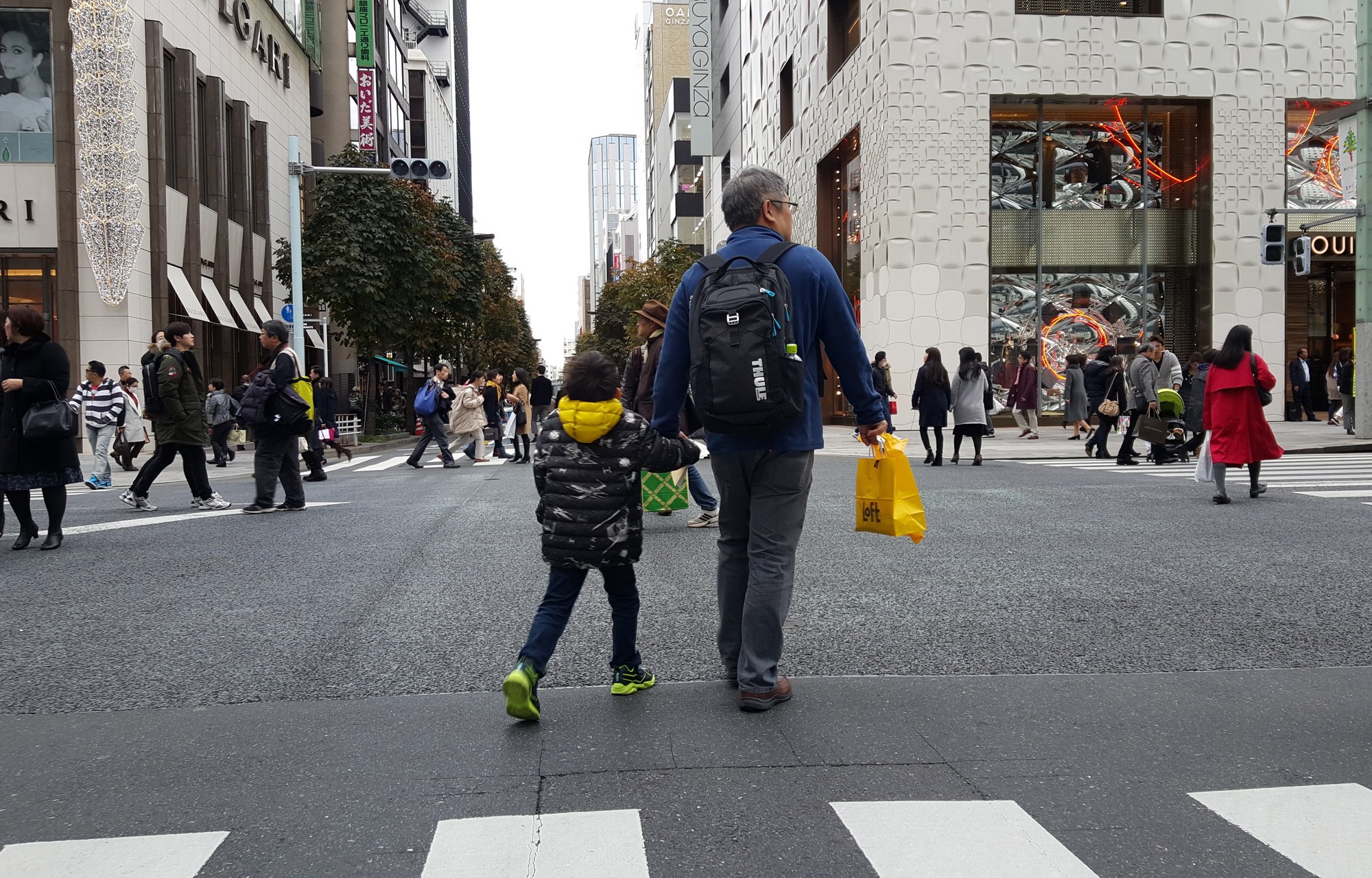 Every weekend, Ginza main street is closed to traffic and become a large pedestrian zone. The road closure takes place from 12:00 to 17:00. It is an opportunity to take some photographs as the street becomes one long area filled with people and not cars.