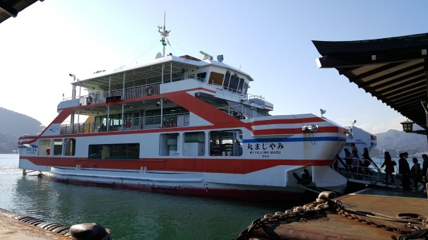 We waited for the tram to Yokogawa station and later took a train to Miyajima-guchi.