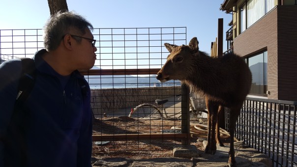 We walked back to the ferry terminal when the sky turns dark. The streets were quieter and more peaceful, but all the shops are closing as we walk towards the terminal. The deer was more active and they were going into shops looking for left over food.