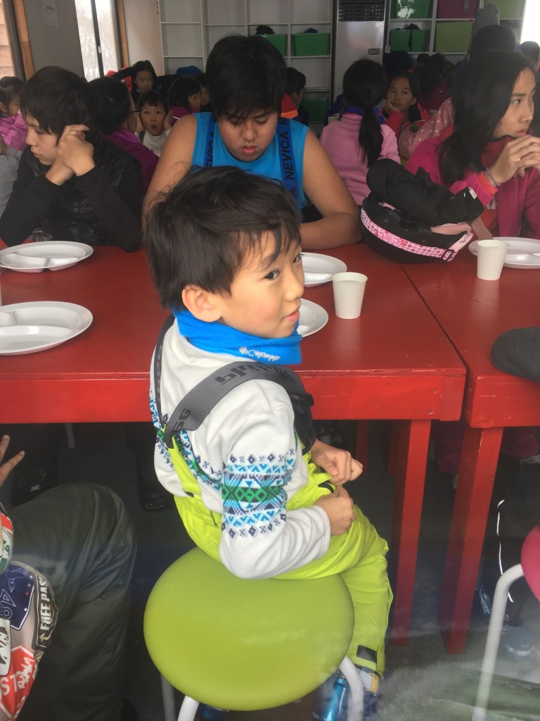 When Scott asked us to go for our lunch, we did not listen to him. We threw snowball at him. The others trainees and coaches joined us in our snowball fight. After the ‘fight’, we went into the canteen and had our lunch. I had rice, sausages and egg, for my lunch. I probably too hungry, and I finished all my food.