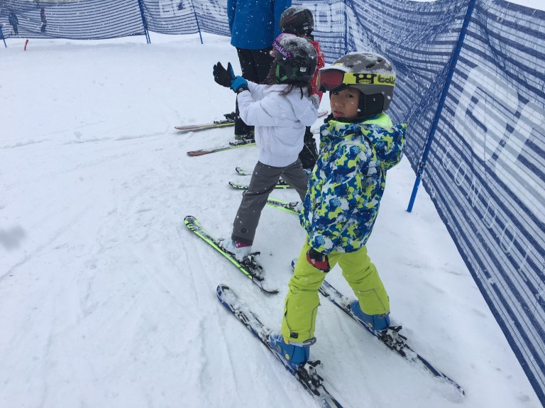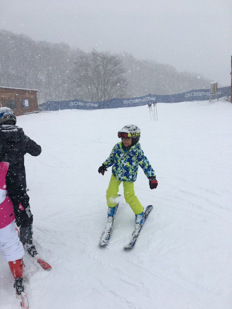 We started learning to ski by putting our ski in a “V” shape position, when we want to move with the ski down the slope. Daddy later told me that this is known as “Snowplough”. It is a very stable position, which also acts as a brake while sking.