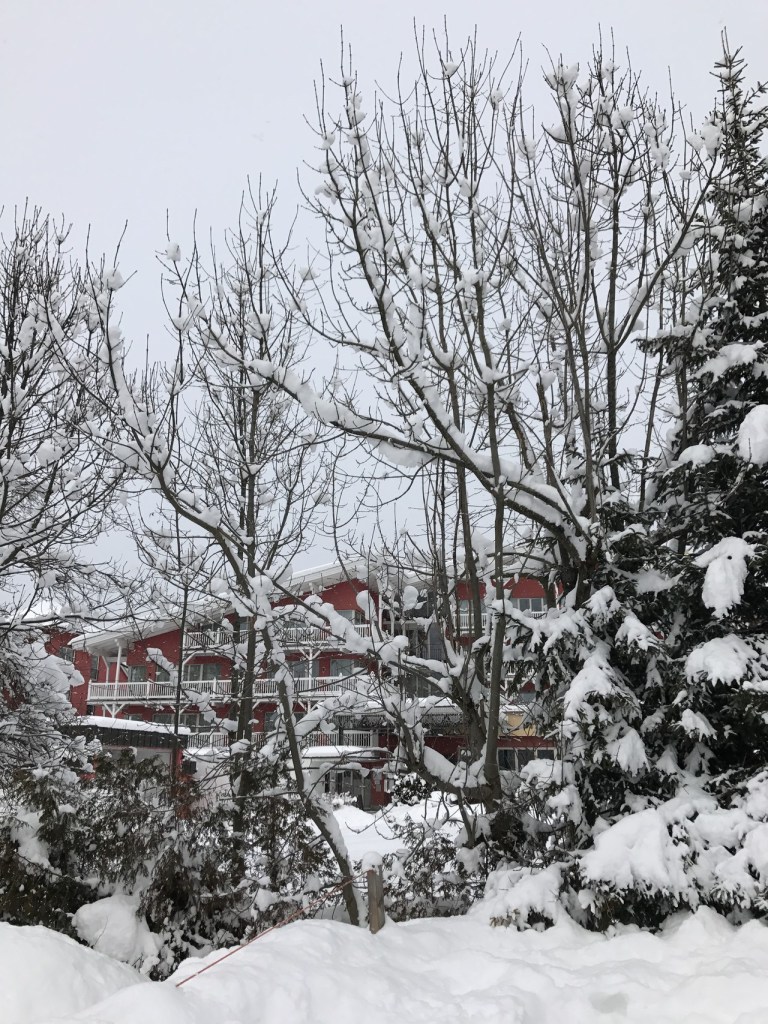 And what make it a great place to stay is that mummy can look out of the balcony and see us ski on the slope.