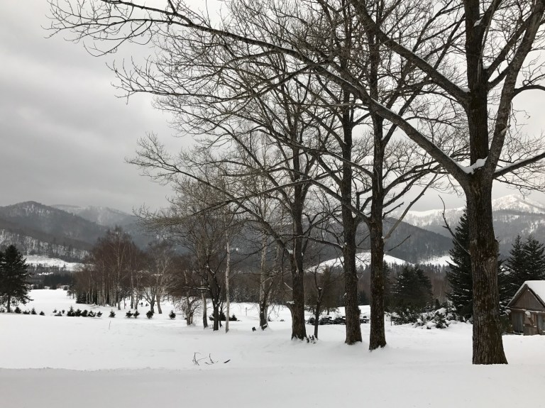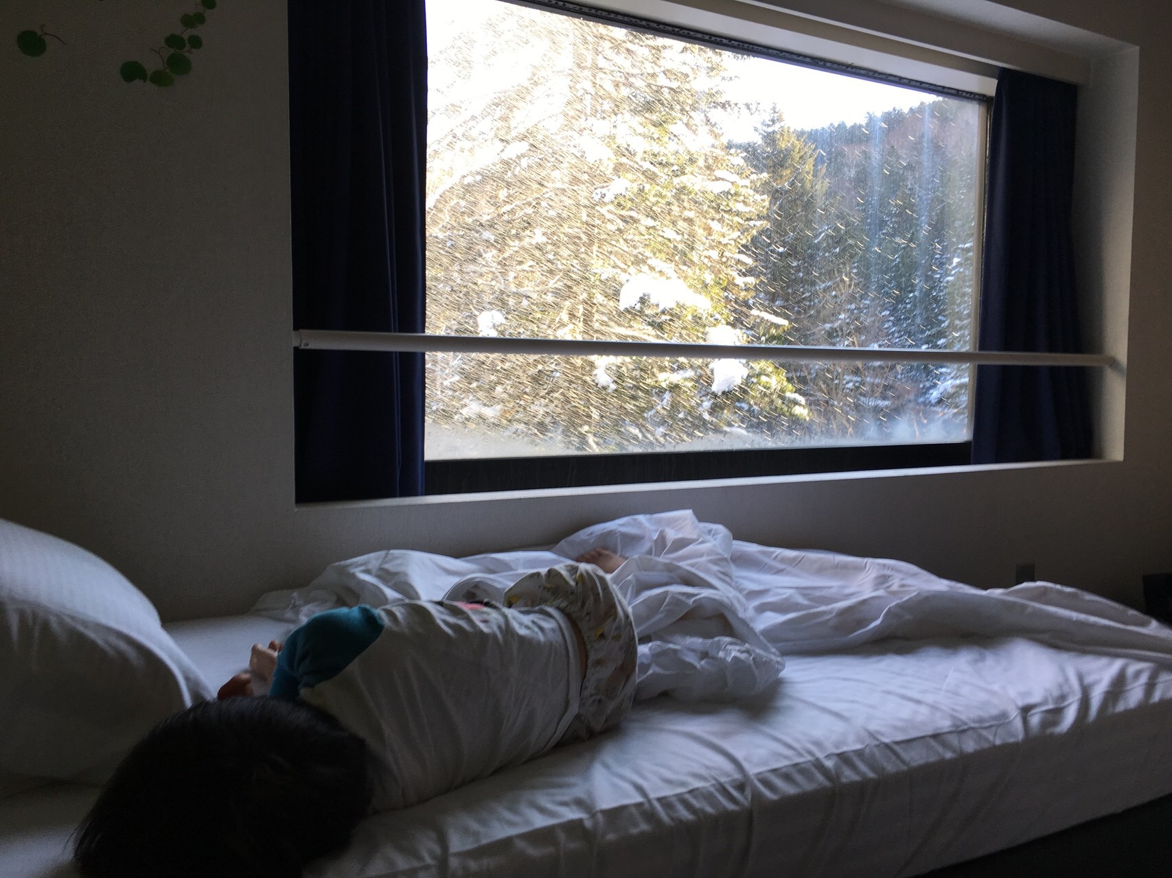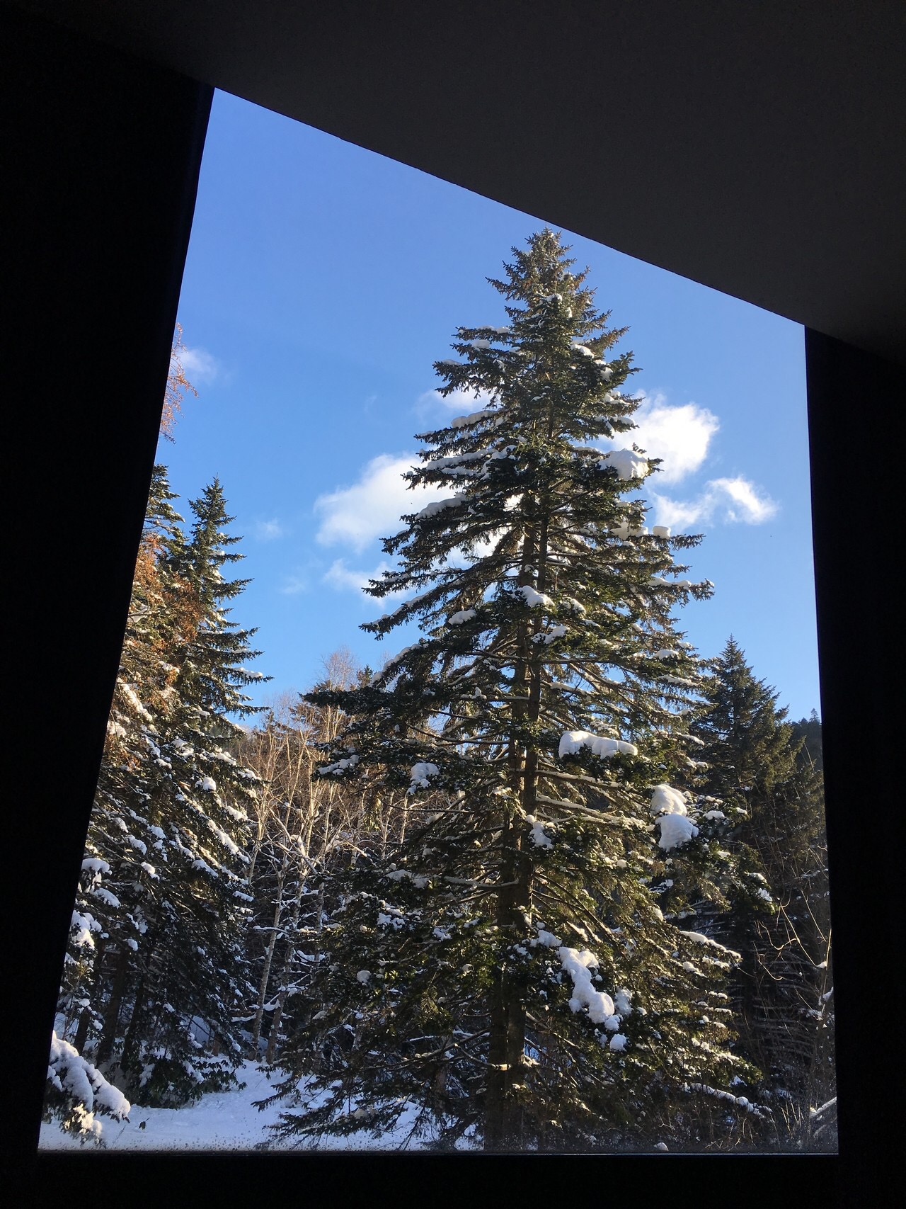 Though the sun glare was shining through the window, we slept in and decided to wake up late in the still winter morning. The trees rustle occasionally when the snow falls from the roof of the building.