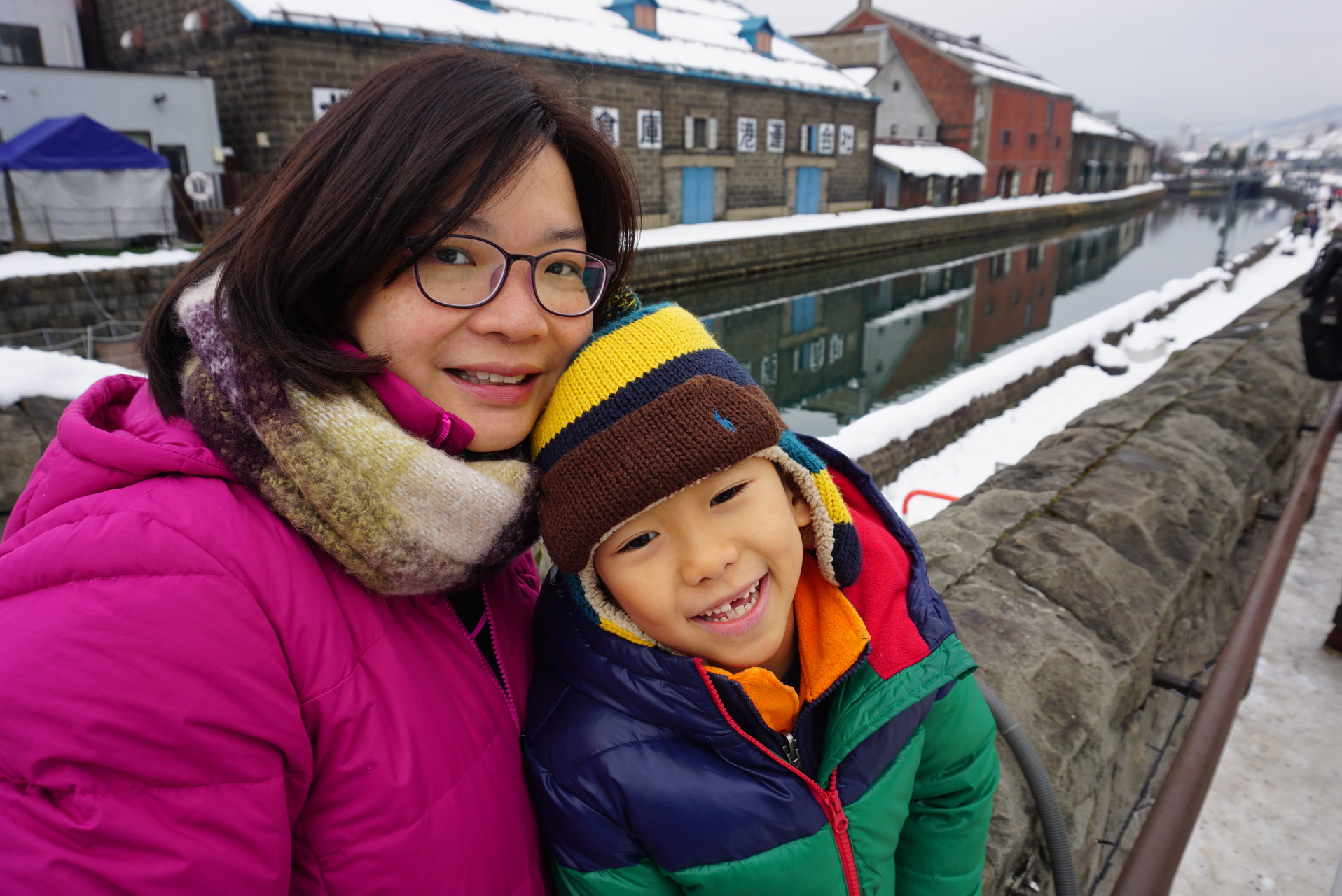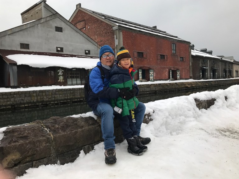 From there, we walked to the Otaru Canal. The walked was slippery with ice forming on the pavement. Jaydon was enjoying sliding himself along the pavement while making our way to the canal.