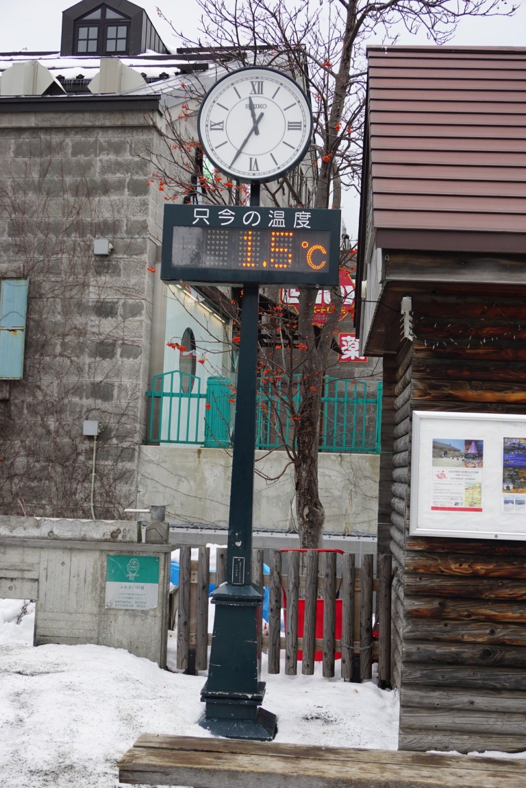 There was a clock and a digital thermometer. 1.5 Degree Celsius was a comfortable temperature for us, after playing in the cold at -10 degree Celsius at Tomamu.