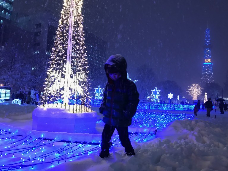 Around 4.30pm, we made our way to Odori Park for the White Illumination and German Christmas Market. It was snowing heavily but we brave through the snow in Odori Park.