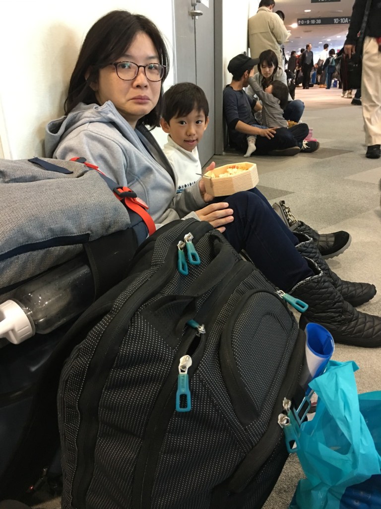 Fifth Problem – After a long queue to clear immigration, we were in the waiting area for our flight. By this time, we were hungry and tired. However, all selves at the shops were emptied. There was no food to buy to feed ourselves. Thank goodness we managed to grab a bento earlier the day, and we shared the bento between the 3 of us.