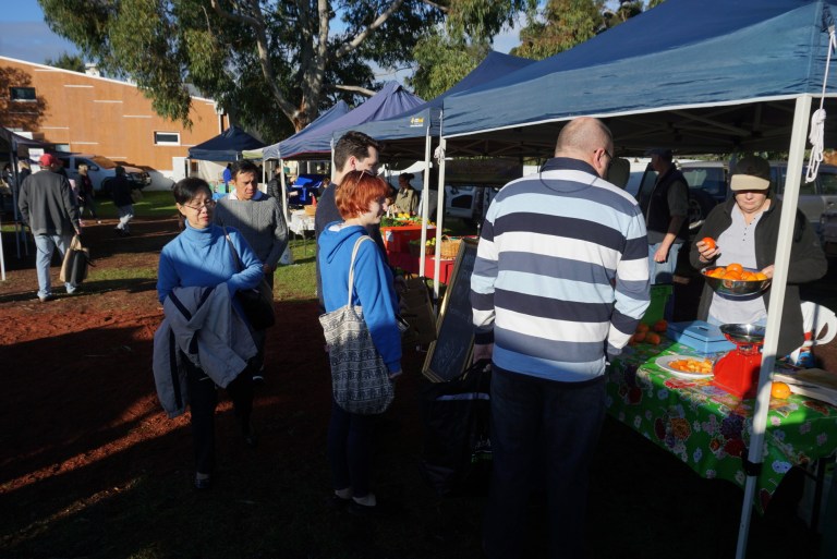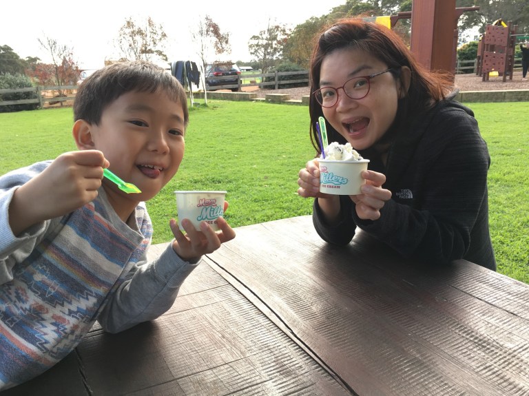 We head for Margaret River Farmers Market early in the morning. It was hassle and bustle when we arrives at the market. Probably it was too early, Jaydon had a tummy ache. So while the rest is enjoying the time at the market. Daddy and Jaydon spend their time at the toilet talking to each other 😦