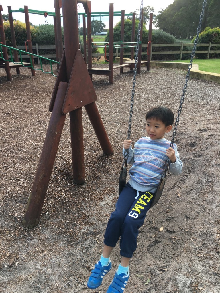 There is a huge playground at Millers which Jaydon cannot resist having some fun at the swing.