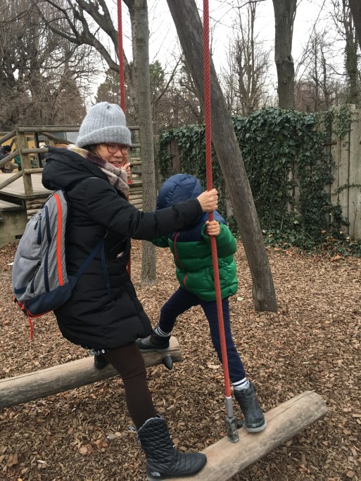 Within the zoo, there is a neat playground for the kids. Jaydon had fun with mom. I think we spent nearly an hour in the playground.