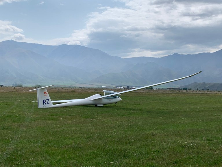 After a short set up, the glider was towed up in the sky, by a tow plane towards the horizon, behind the mountains.